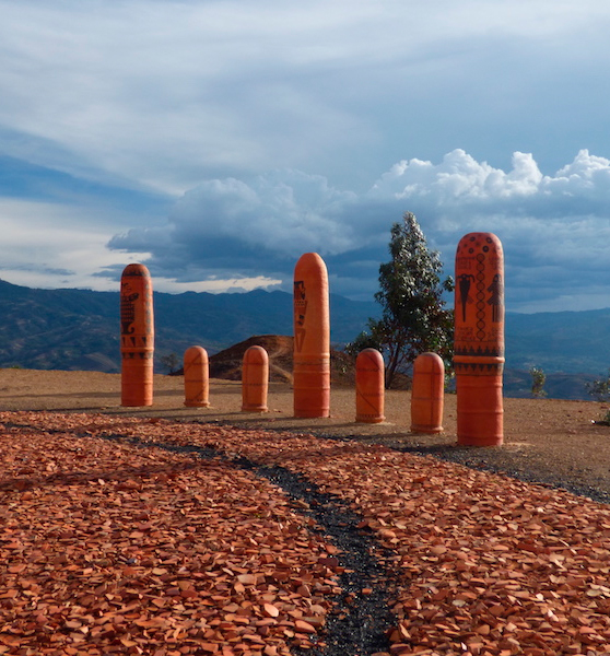 El lugar es un observatorio astronómico construido con tótems de arcilla de forma fálica, formando un anillo en torno un tótem central, los once tótems mayores marcan la salida del sol durante los solsticios y equinoccios, los tótems menores se utilizan para la medición de los movimientos de la luna, los tótems están decorados con iconografía prehispánica de culturas como la Tolima, Sinú, Muisca, Maya, Inca, y Nazca entre otras.
